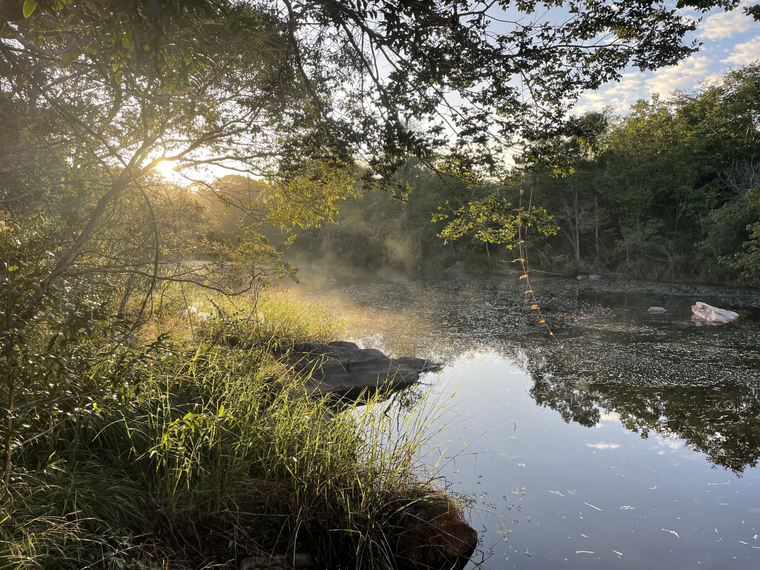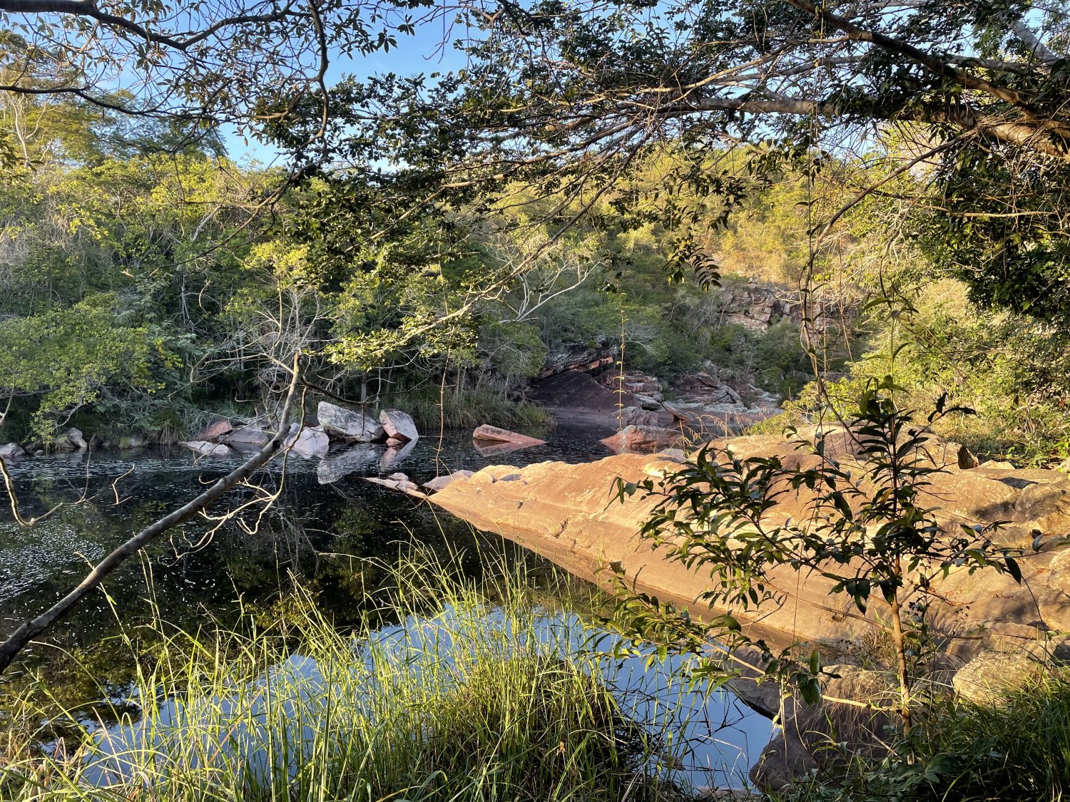 Tomamos banho ao escurecer, em poços rio acima.