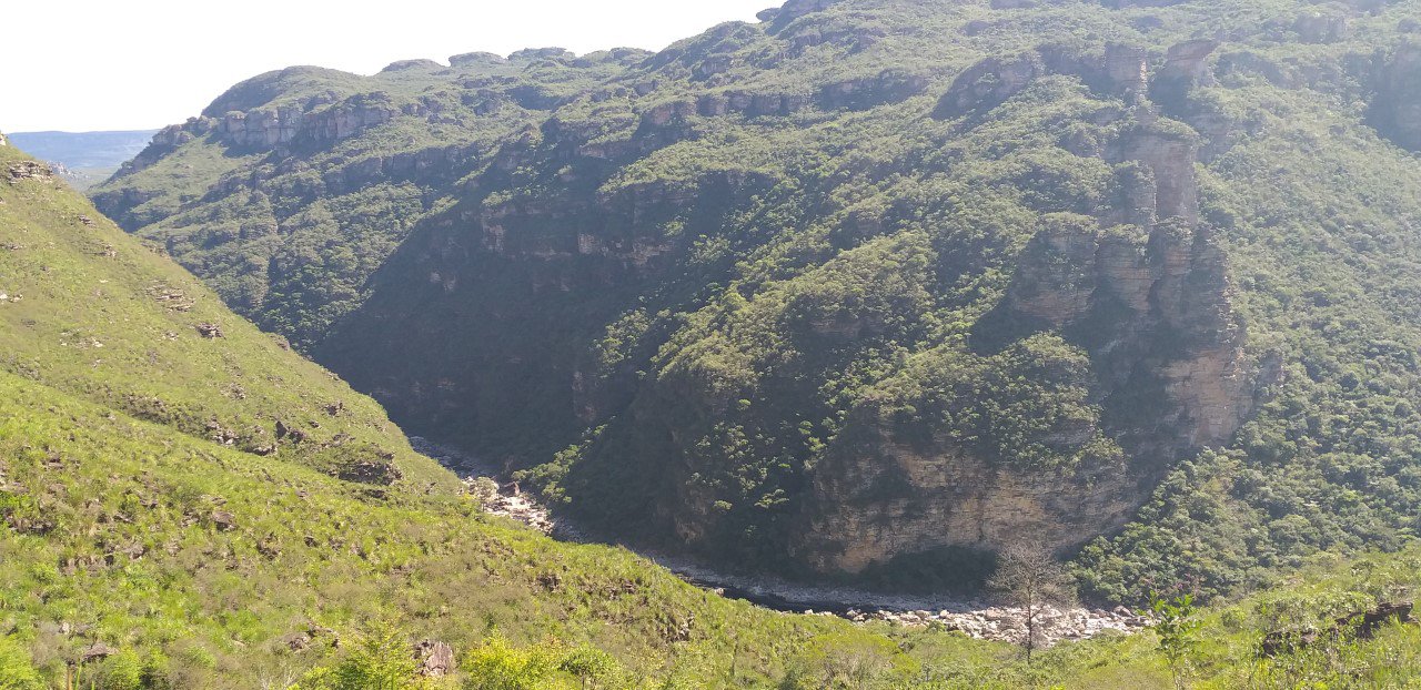 Na borda do cânion, 300 metros acima do rio, o cenário era impressionante. Ao sudeste observamos a estrada que serpenteava pelo outro lado do Paraguaçu indo para a área de garimpo da Nova Sibéria (assim chamada pelo número de estrangeiros que trabalharam lá). É uma estrada apenas para 4X4.