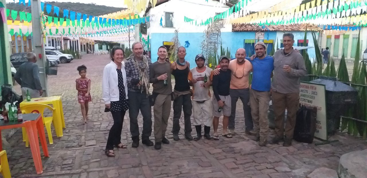 A trupe do Bushcraft BA na chegada a Igatu. Esquerda para a direita: Ana Moraes, eu, Fábio, Cris, Edilande, Joaab, Igor, Samuel e Sergio.