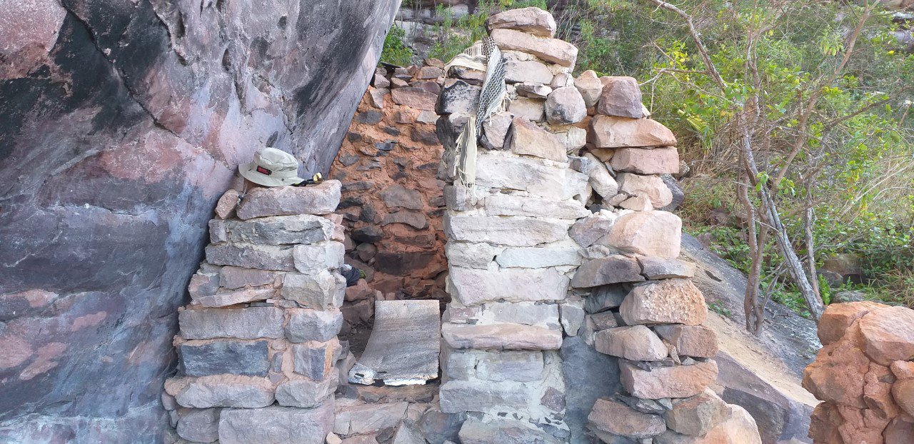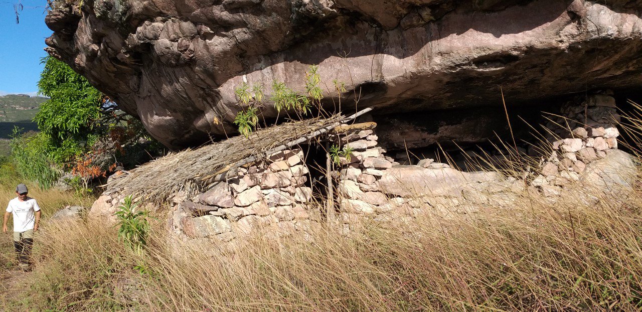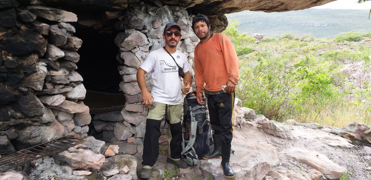 Visitamos a toca do Rosalvo, que o Edilande ainda habitava ocasionalmente, para pegar alguns utensílios. Tocas são o aproveitamento de lapas de pedra, fechadas nos lados por muros de pedra, construídas para moradia dos garimpeiros.