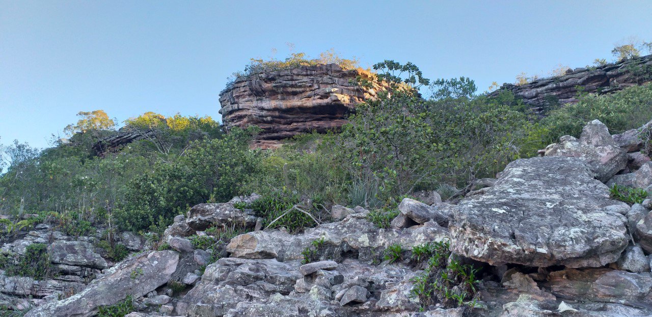 Na Rampa do Carbonado diversos montes de pedras indicavam a existência de grunas do garimpo. Joaab avistou mais acima as tocas dos garimpeiros que trabalharam no local.