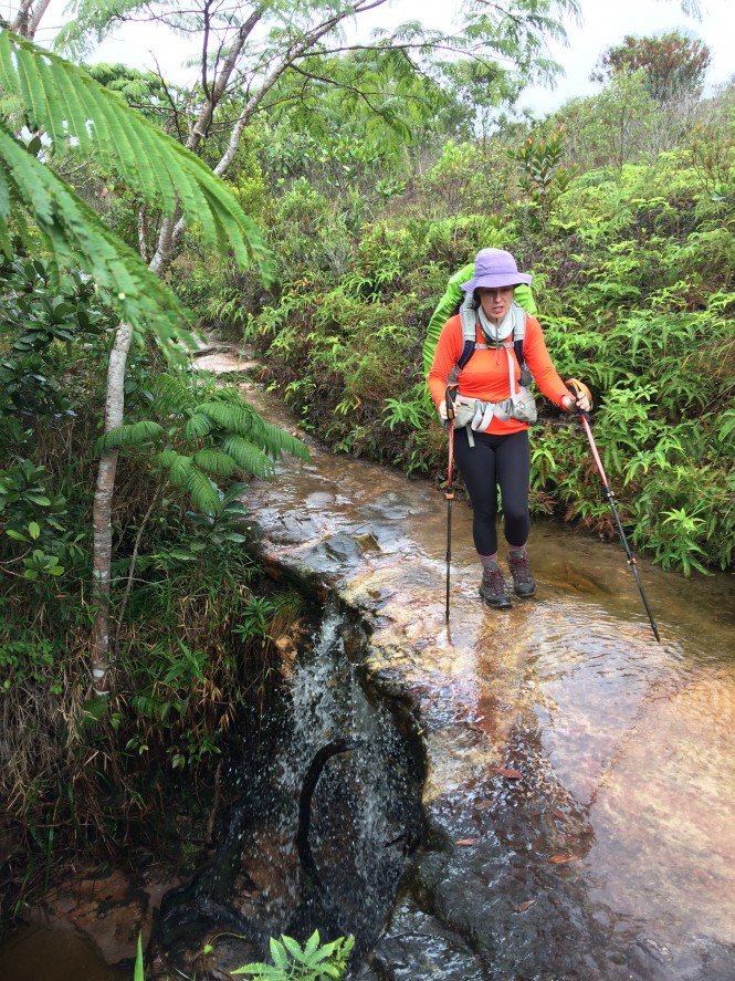 Depois de 3 horas de caminhada chegamos em Águas Claras, lugar bonito. No caminho avaliávamos se subiríamos ou não o Morrão. Mas as nuvens encobriam o topo e o vento e chuva tornariam a subida desagradável. Decidimos que faríamos o cume noutra ocasião. seria um desperdício de esforço subir e não avistar nada.