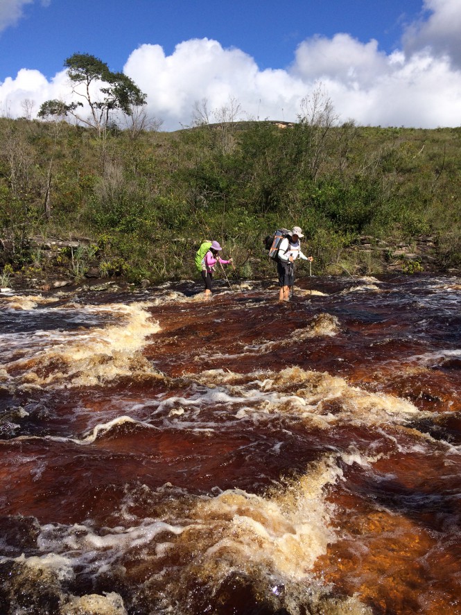 Atravessamos o rio Mucugezinho duas vezes, a segunda com certa correnteza e risco de escorregão e rafting involuntário (a correnteza podia fazer perder o pé de apoio).