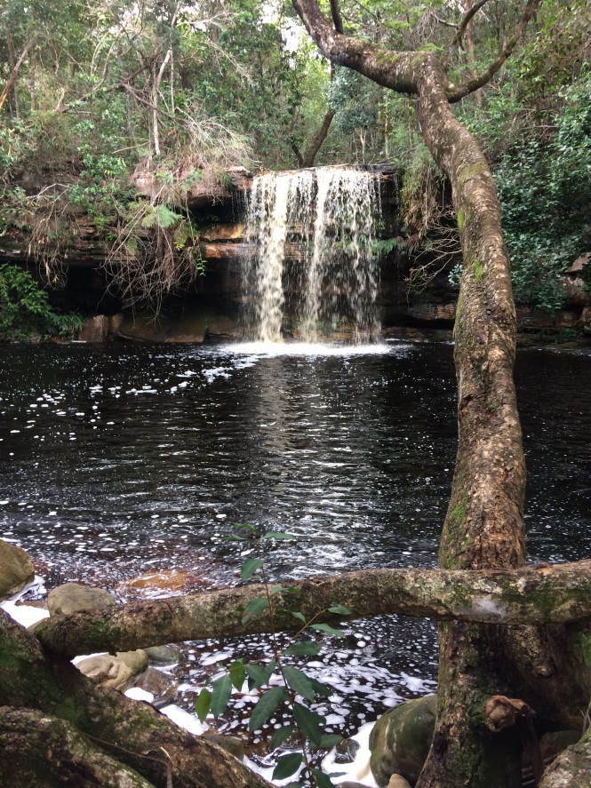 Logo cedo, após o café, desci para lavar os pratos e tomei um rápido banho no poção. Tiramos fotos da cachoeira. Colocamos as coisas na mochila e antes da nove horas já estávamos andando.