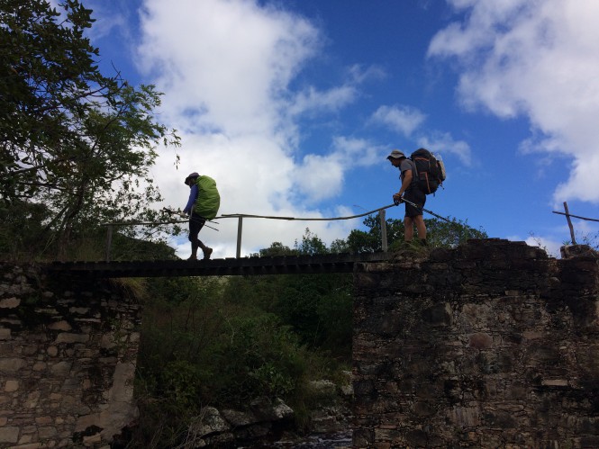Duas horas após sair do Ponem chegamos no ponto onde se cruza o rio Mandassaia. Aproveitamos para lanchar. Em seguida subimos para a Garganta de Pedra, um corte artificial na serra para facilitar a passagem das tropas de mulas.