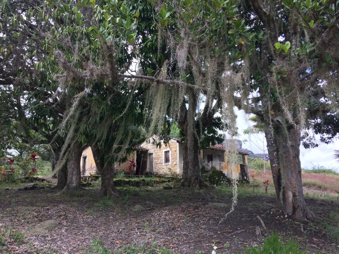 Andamos 3 km no acostamento da estrada até pegarmos uma estradinha de terra à direita, descendo para o Mucugezinho onde pegamos água, cruzamos a ponte e passamos diante da casa abandonada de Dona Ponem.