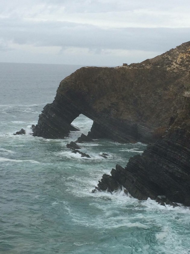 A toda hora parava para tirar fotos. Alguns pontos têm arcos de pedra impressionantes, como pouco antes de chegar ao Cabo Sardão, com seu farol.
