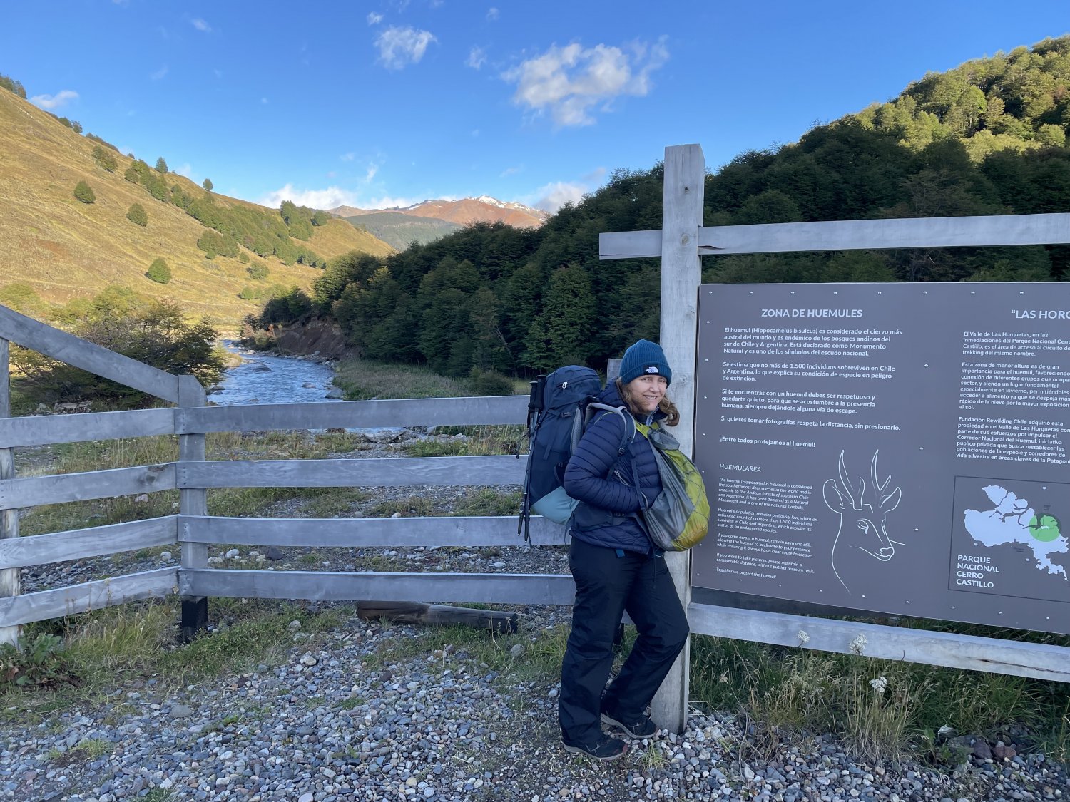 Atravessamos uma pequena ponte pênsil e descemos pelo vale até a guarita de controle da CONAF. Estava fechada. Mas o livro de registro de entrada estava aberto para que preenchêssemos. Lucia notou que nesta manhã dois chilenos já haviam feito o registro, na nossa frente.
