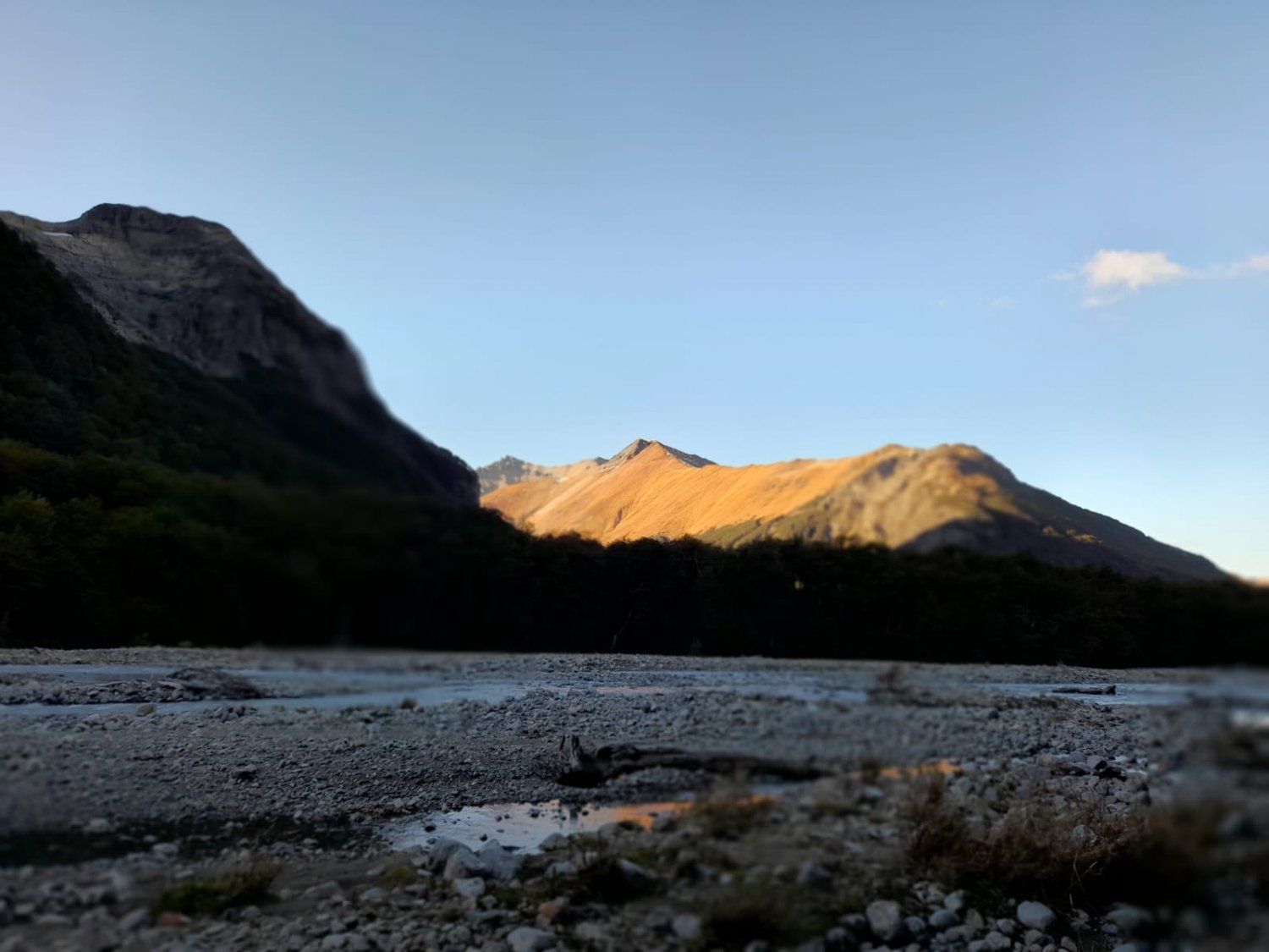 Deste modo continuamos a baixada. Minha preocupação se dissipou diante daquele belíssimo bosque de lengas que percorríamos e ao perceber que alcançaríamos o fundo do vale a tempo. Chegamos ao acampamento Porteadores justo ao escurecer. O Adam já estava esperando com a headlamp ligada do outro lado do rio e mostrou onde se podia cruzá-lo sem molhar os pés. Eram 20:30. Ele disse-nos que se não chegássemos até 21 horas ele iria subir para procurar-nos.