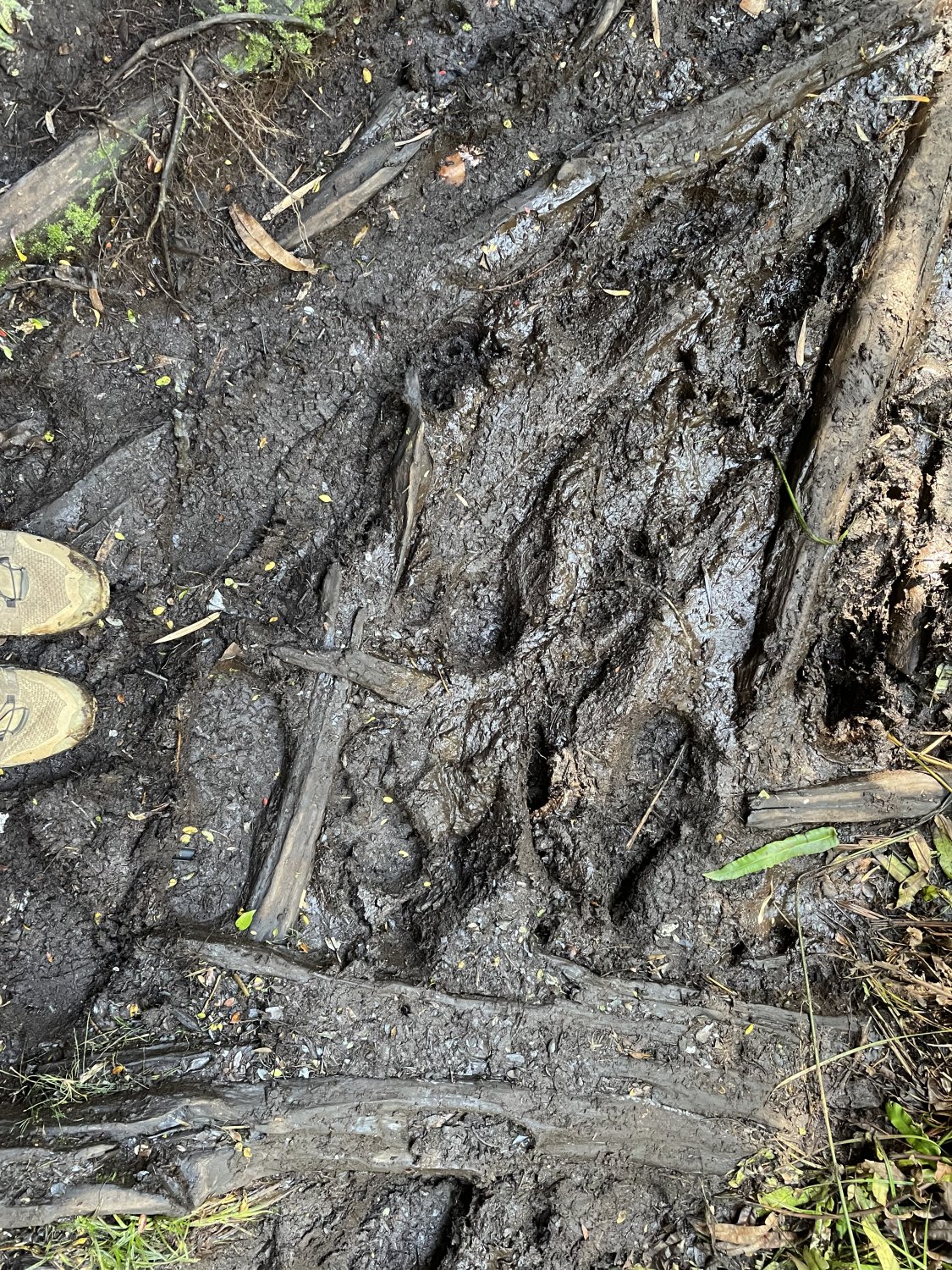Dia seguinte baixamos até a portaria Conaf (estrada). Mas a lama continuava. Este não é um lugar bom para calçados não impermeáveis. Eu uso tênis de trilha auto drenantes. Mas demoram muito para secar num ambiente destes.
