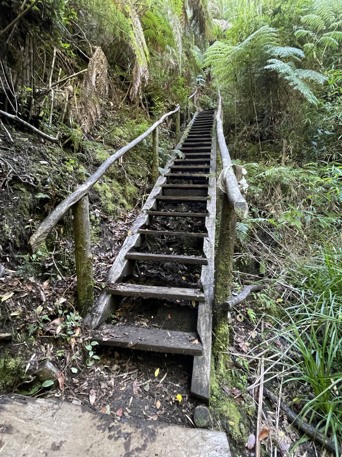 Algumas poucas escadas ajudaram bastante nesta subida de 7 km até a entrada do parque. Basicamente só subida. Algumas ladeiras de terra estavam bem escorregadias.