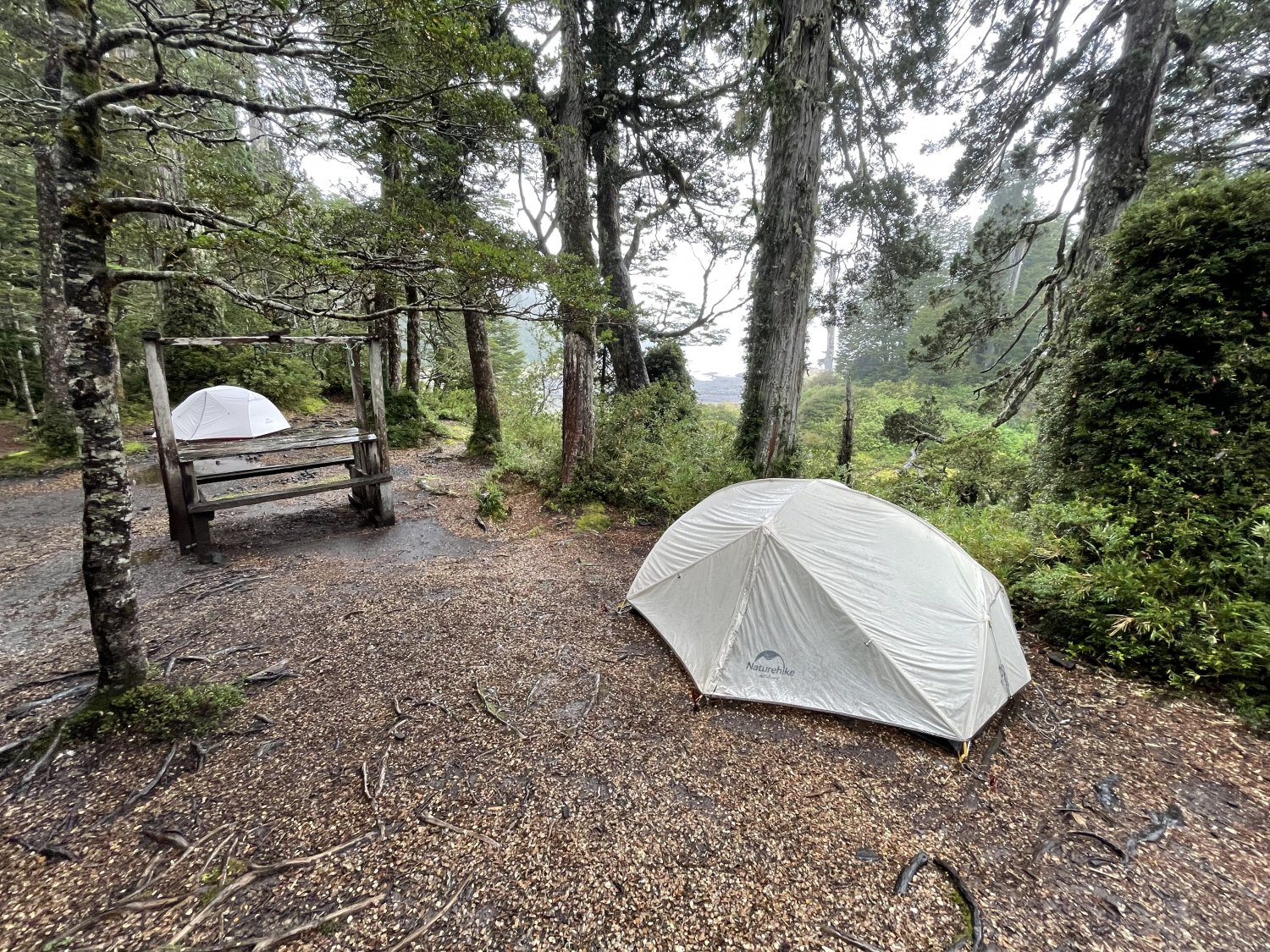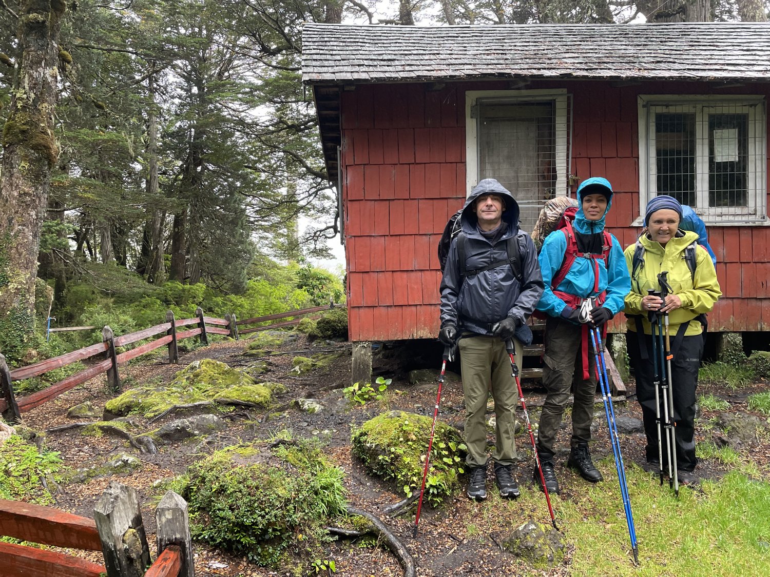 Llovizna chata nos acompanhou até o lago Pinto e Concha onde fica a casa dos guardaparques (fechada) e um refúgio em mal estado.