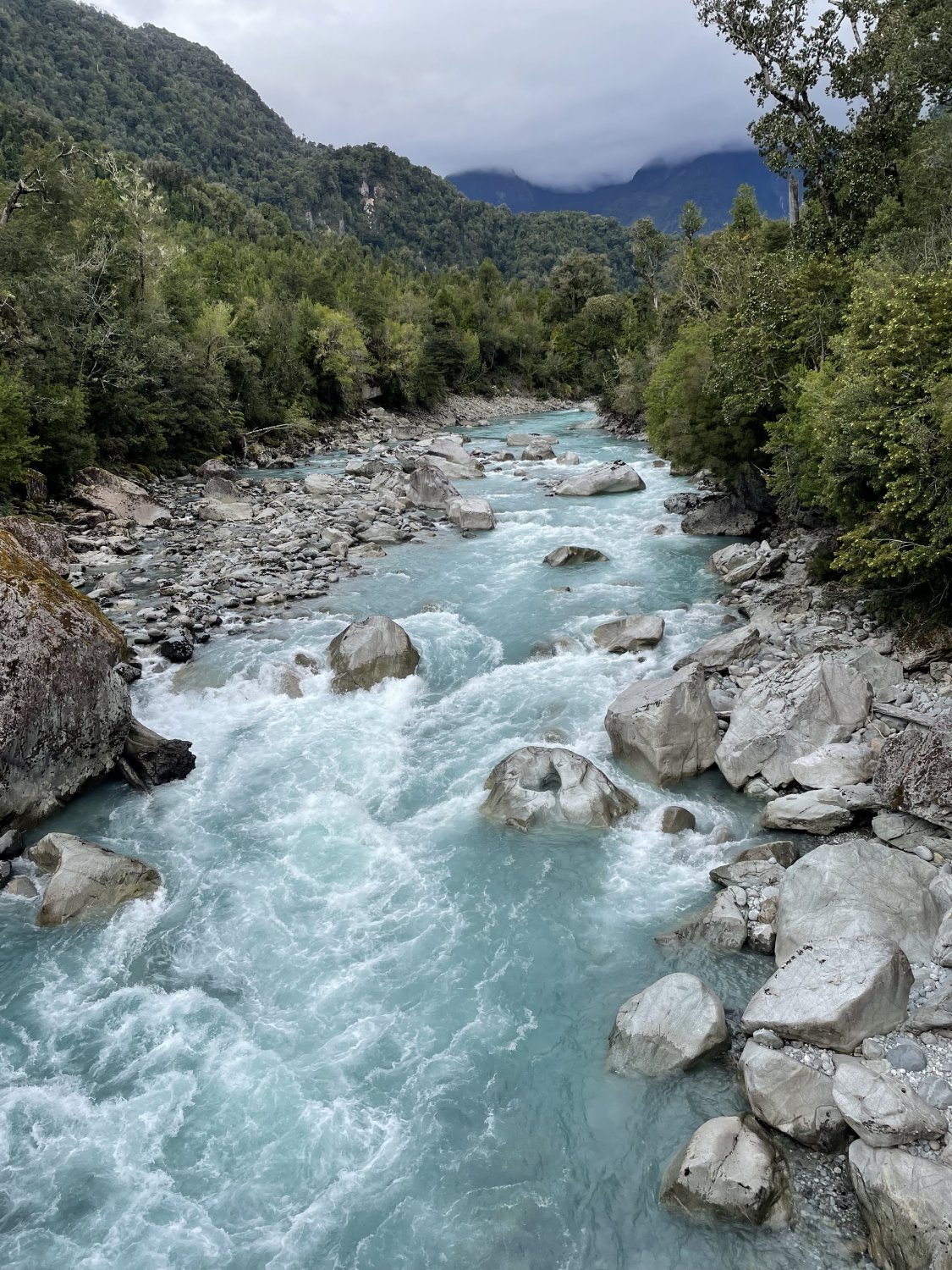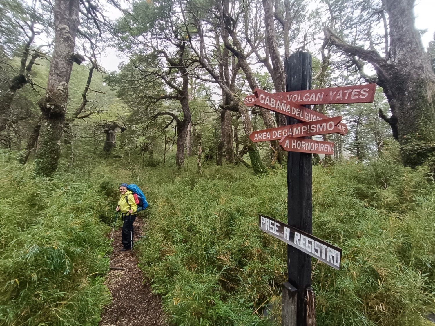 Com aquele tempo nublado e chuvoso não dava para subir ao mirante do vulcão Yates. Ficaria para o dia seguinte.