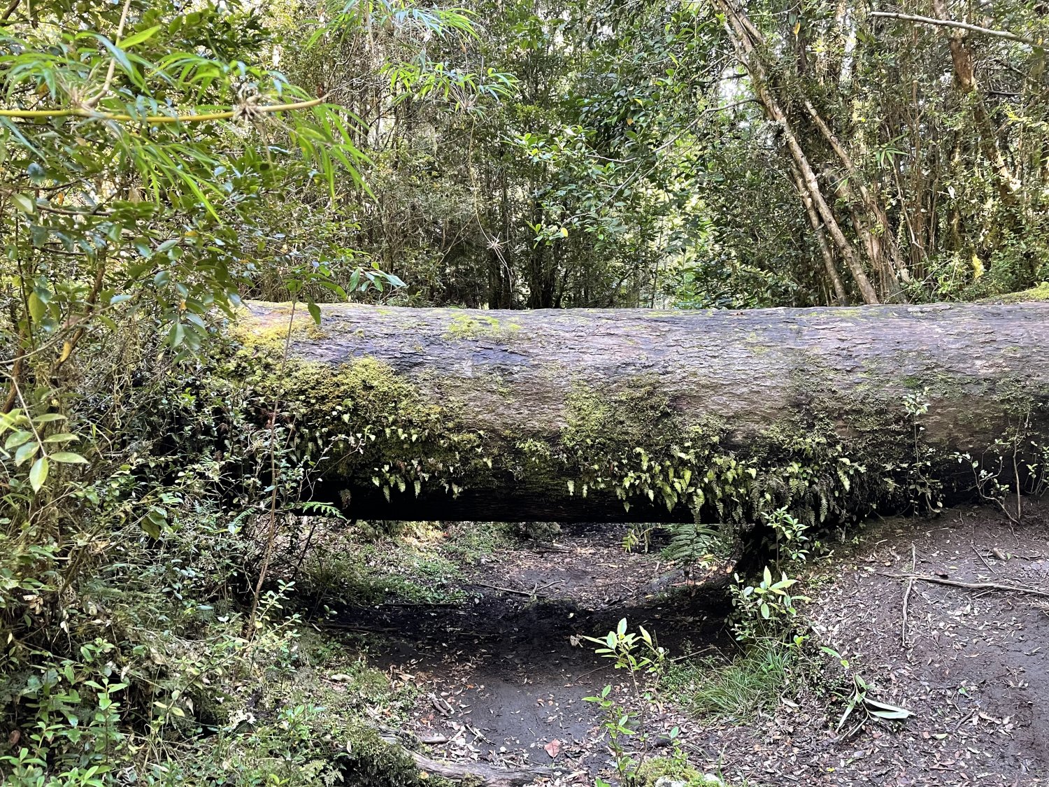 Alguns troncos caídos na trilha, enormes, obrigavam a pegarmos desvios.