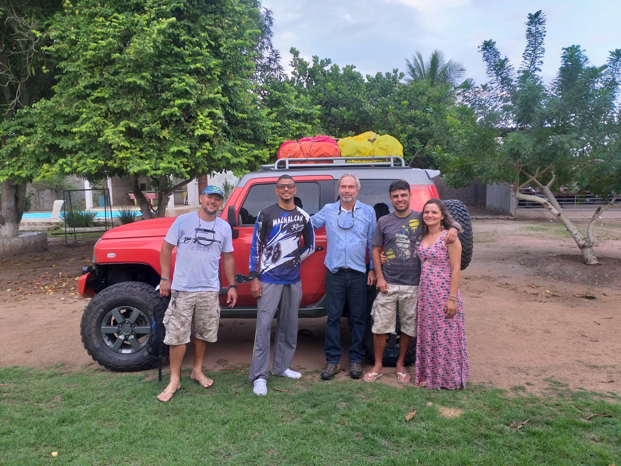 O jipão pronto para partir. Da esquerda para a direita Igor, Alex, eu, Samuel e Lucinha.