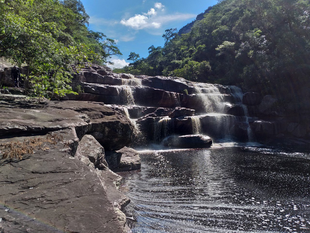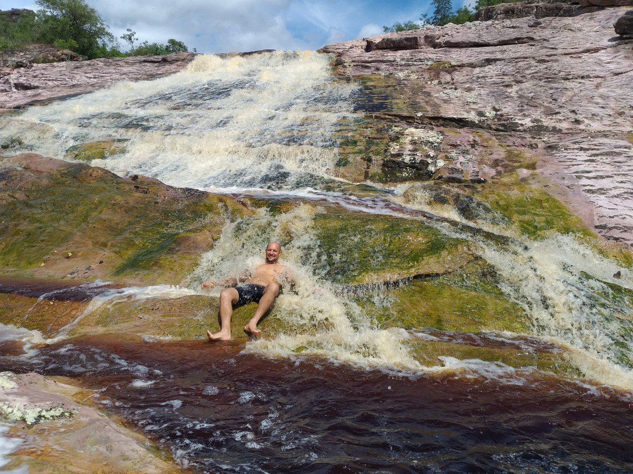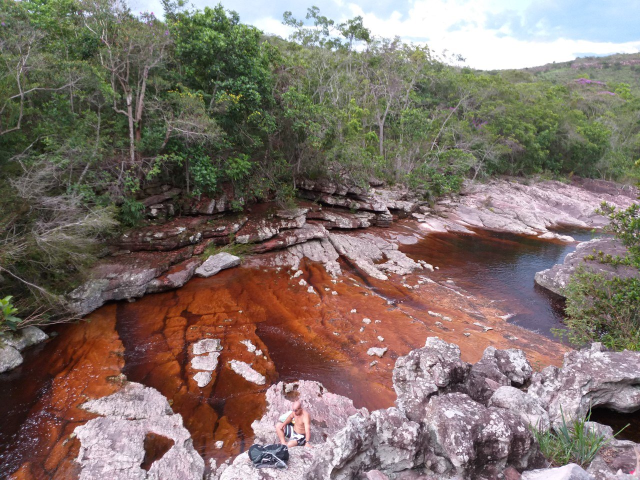 Chegamos no caldeirão em aproximadamente 2,5 horas contadas do Ancorado. Montamos acampamento e caímos na água. Lugar gostoso, com muitas lajes. Decidimos não subir para a cachoeira Intocada, pois seriam quase 3 horas para subir e outras 3 para descer. Voltaríamos ao acampamento no escuro. Queríamos relaxar e descansar. Enfim, um dia preguiçoso.