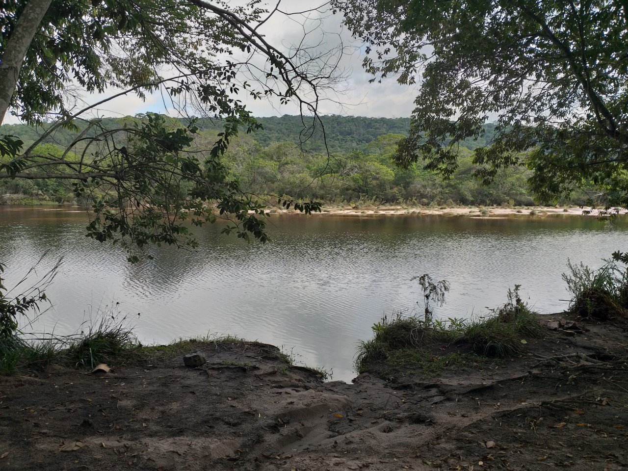 Partimos com Alex conduzindo e no primeiro ponto viável atravessamos o Roncador para sua margem direita verdadeira. Pouco adiante descobrimos uma toca de garimpeiro na outra margem. O pessoal foi explorar. Eu fiquei aguardando.