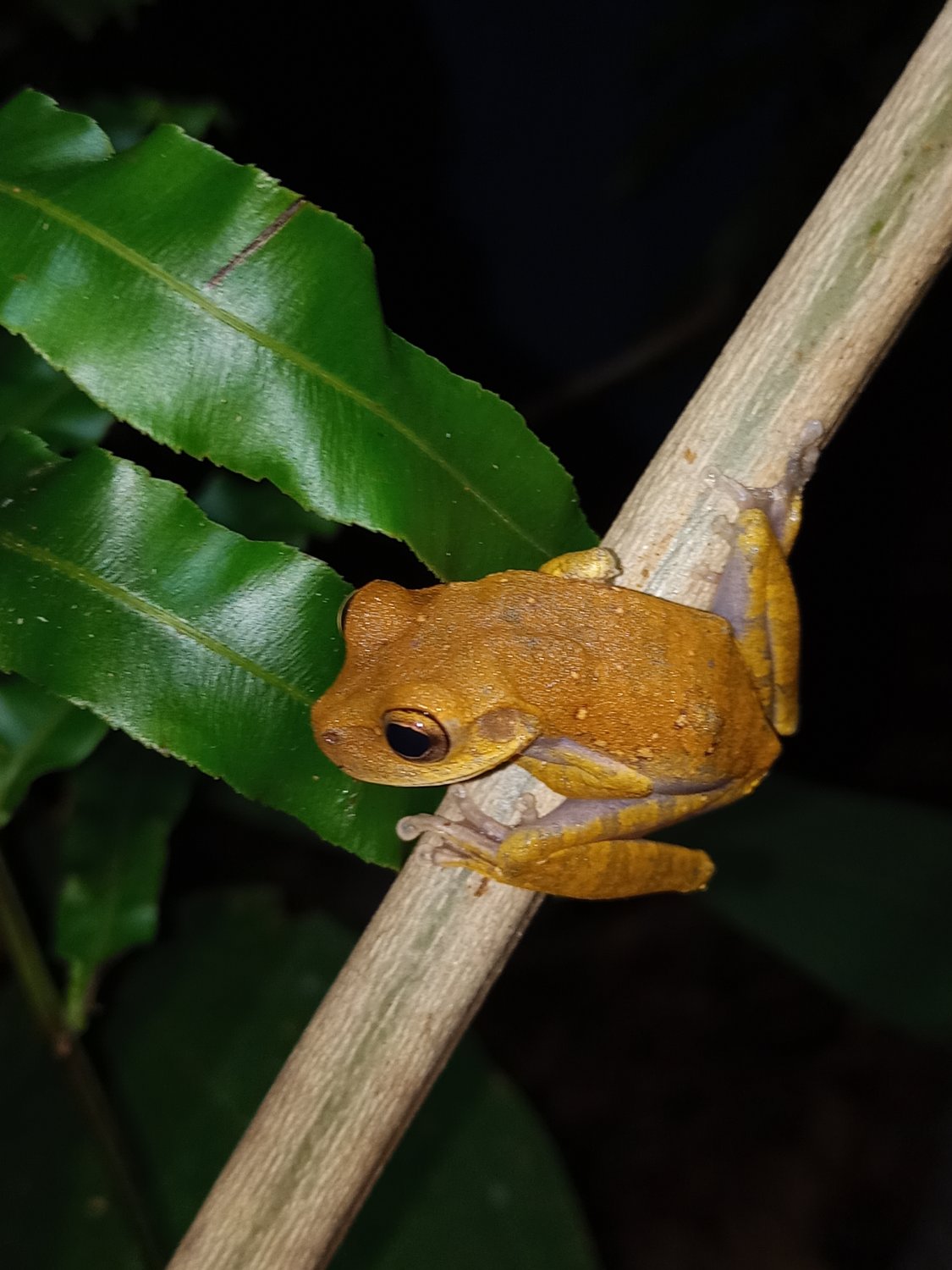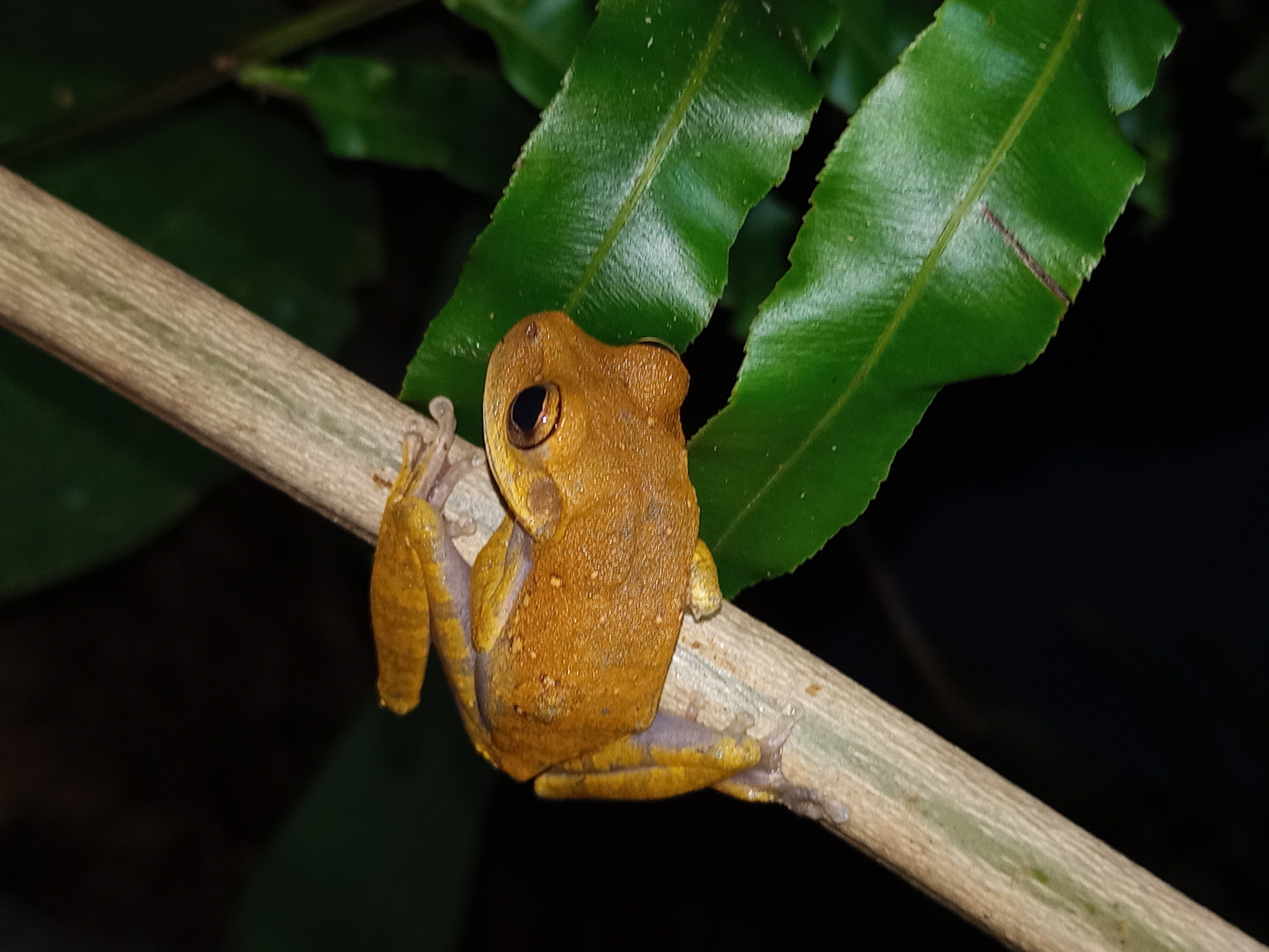 Ao escurecer, depois do jantar, Pedro e Breno saíram para o bosque na área de camping para uma pesquisa de campo de herpetologia procurando com a lanterna as rãs do local. Acompanhei-os. Entre as copas das árvores divisamos a lua quase cheia.