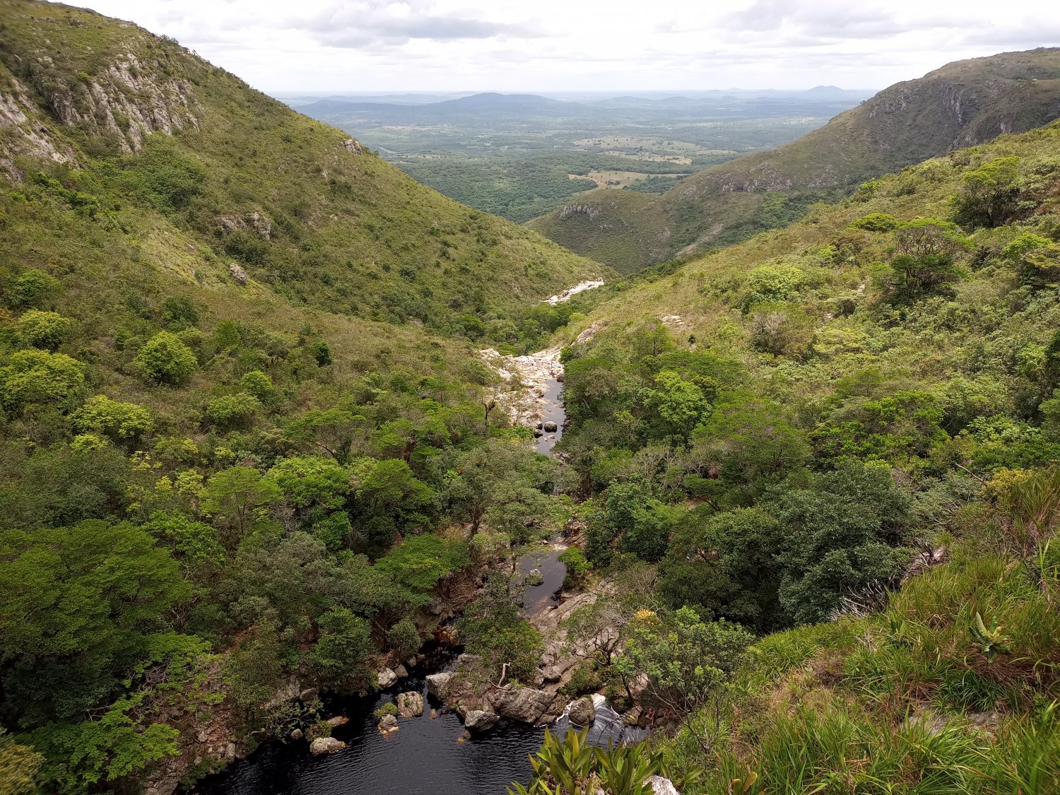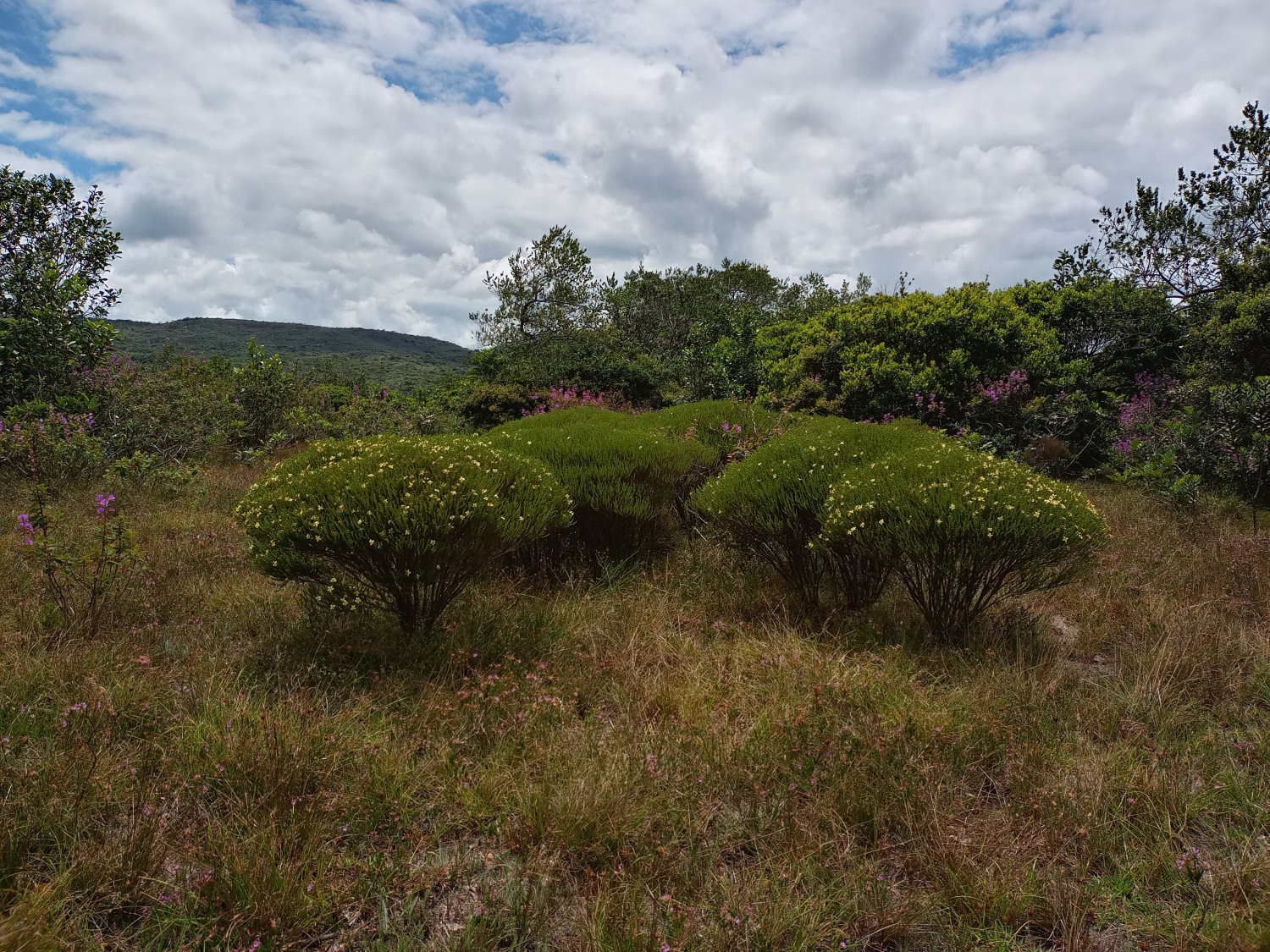 Alcançamos uma área de platô. Como a trilha era um pouco apagada eu liguei o GPS do meu relógio para garantir o caminho de volta. Percorremos durante uma hora uma área bem selvagem. Vegetação baixa com ilhas de árvores.