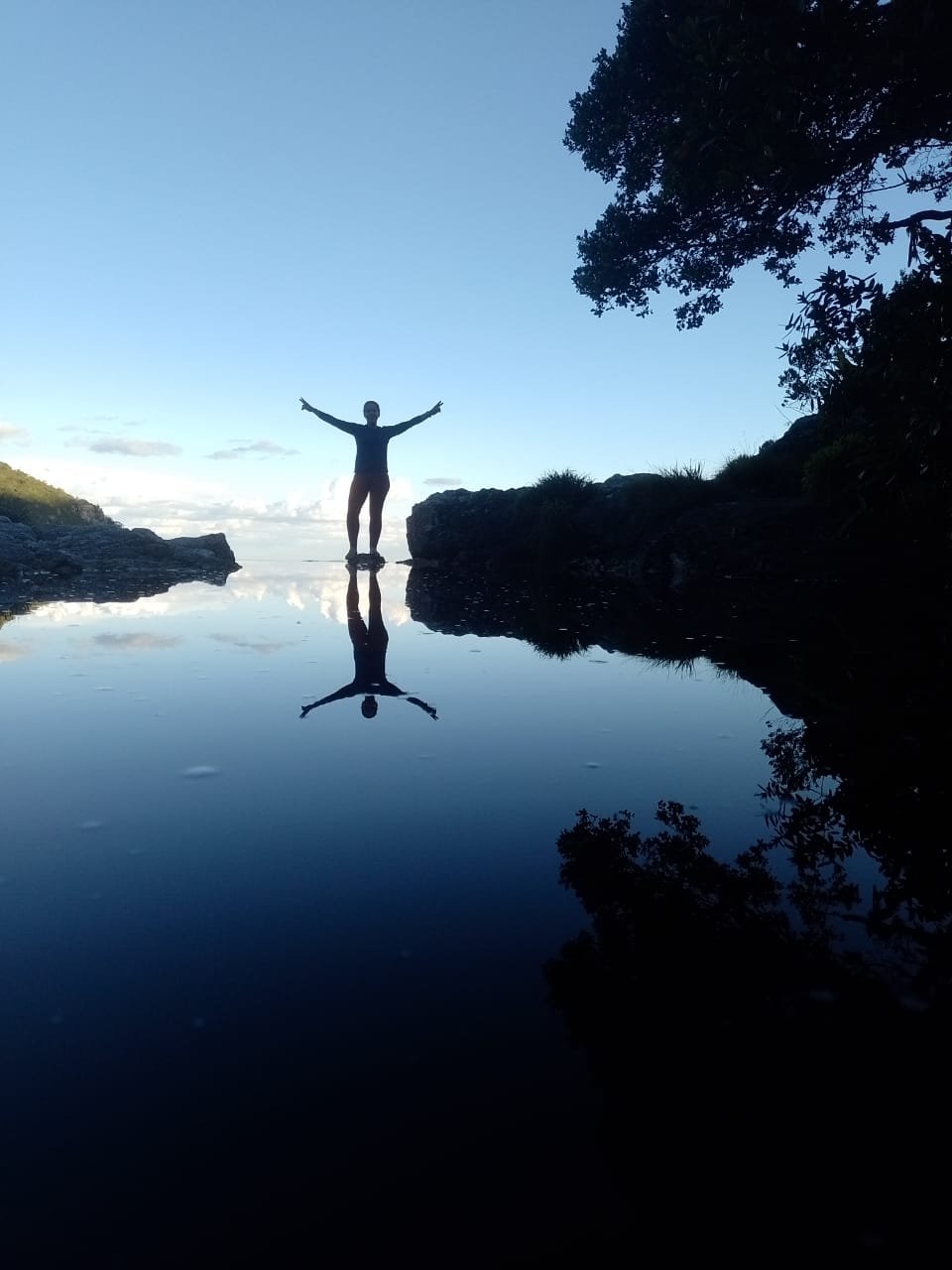 Acabei tirando uma soneca no lajeado. Ernani tirou fotos sensacionais da piscina infinita (poço superior da Véu de Noiva) com o celular numa técnica recém-descoberta por ele.
