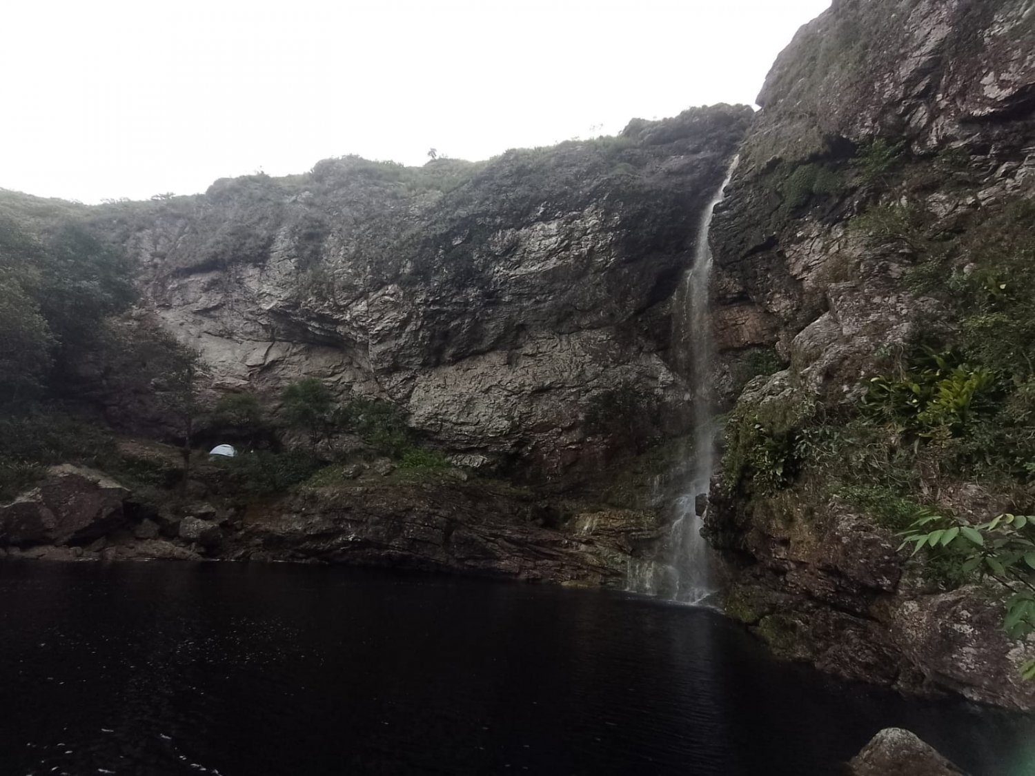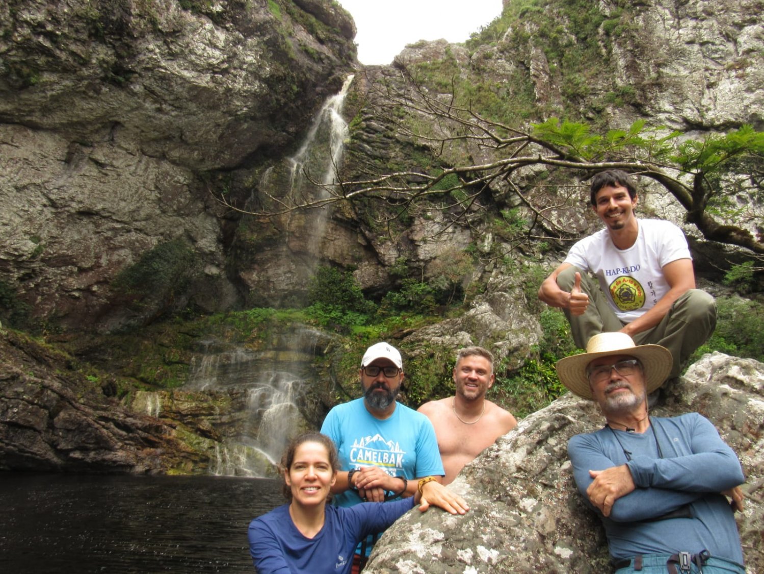 Menos de uma hora depois da saída da capelinha chegamos no poço das Estrelas, cachoeira da Fumaça. Os companheiros de jornada ficaram de queixo caído com a beleza do lugar.