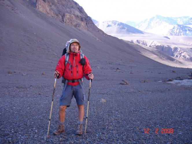 Trekking solo e solitário (sem ver gente por quatro dias), feito na quebrada vizinha ao vale do Horcones, que dá acesso ao Aconcágua.