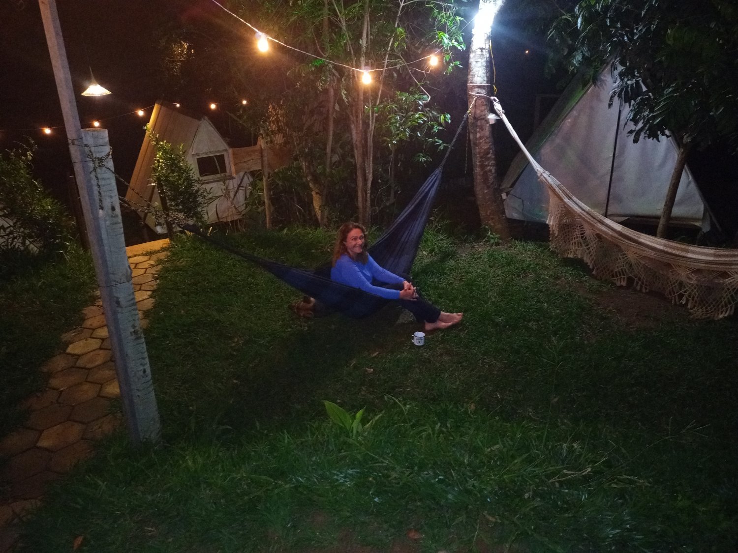 Nesta noite bebemos vinho deitados em redes, com a companhia do Montanha, um gato super felpudo e e do Max, um pastor alemão.