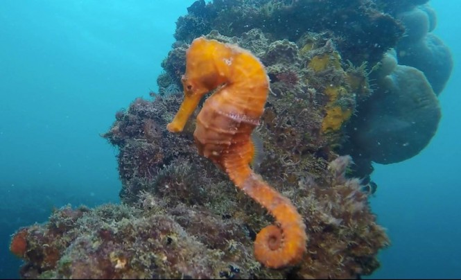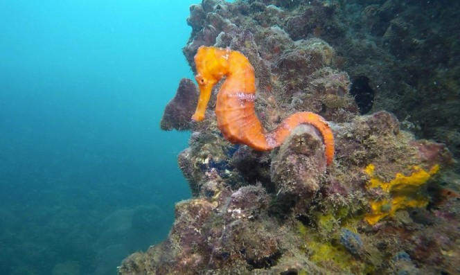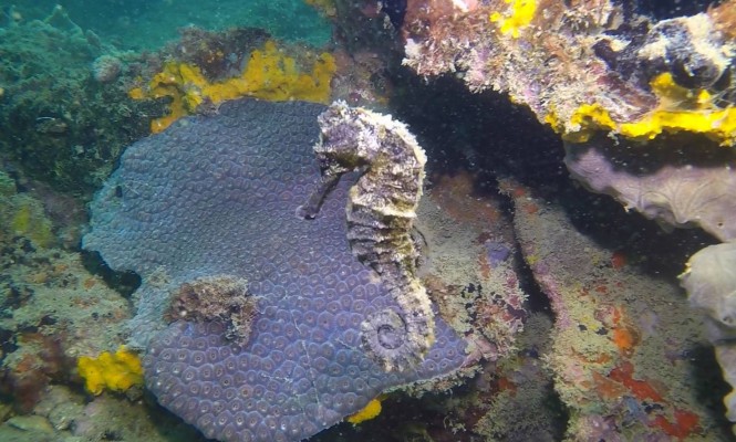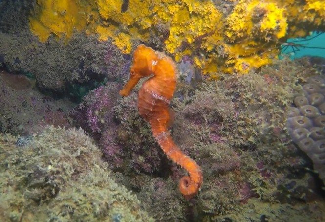 As fotos abaixo mostram cavalos marinhos nas estruturas do naufrágio.