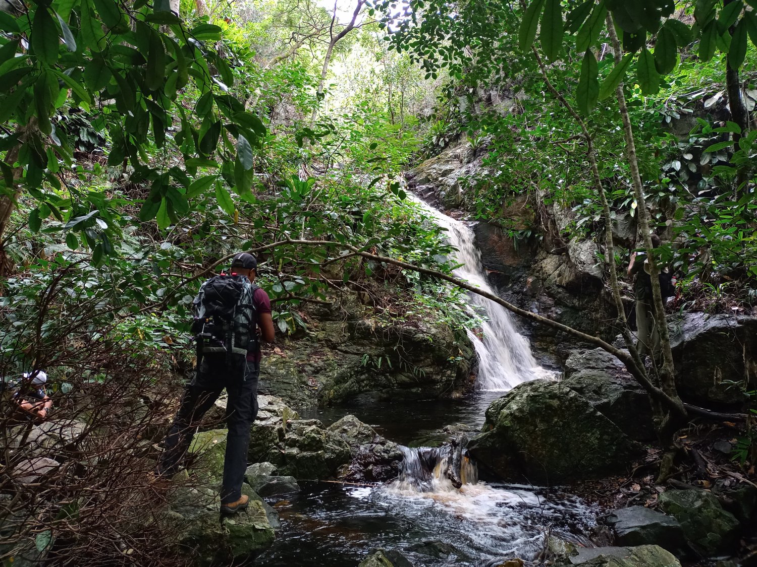 Tomamos banho na cachoeira Piancó quase ao escurecer. Tivemos que voltar usando as luzes das headlamps.