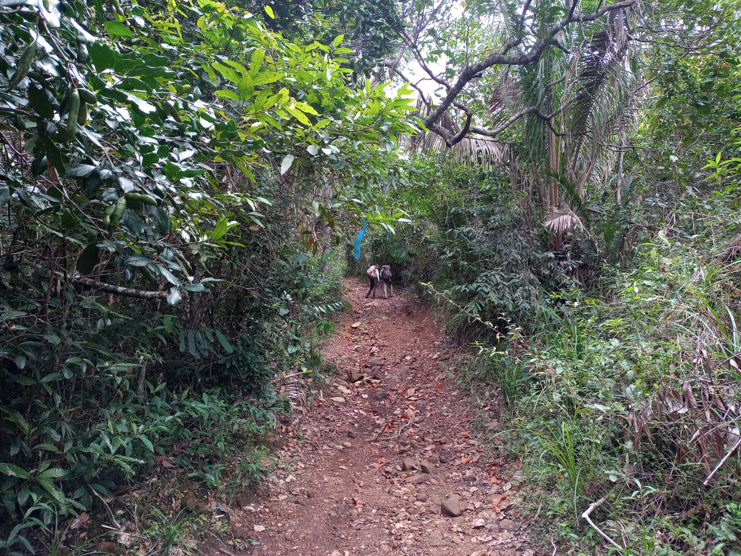 Chegamos na mata e o terreno deixou de ser íngreme e empedrado. Mas havia alguma descida ainda, agora com lama. Os escorregões agora enlameavam o fundilho das calças.