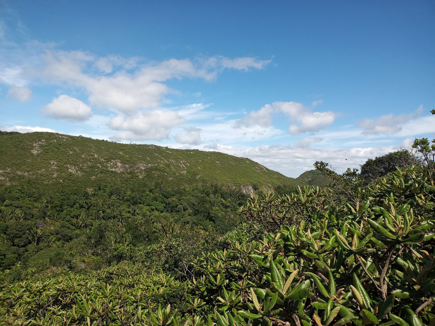 No topo, uma floresta estacional semidecidual muito bonita. Estávamos a 1.000 metros de altitude. Paramos as 13 horas para fazer o lanche-almoço. Era constante o canto das arapongas. Só as ouvíamos e nunca avistavamos a ave, de um branco vistoso. São muito arredias. Acho que é por isto que na gíria espião é chamado de araponga. Sabemos que existe, mas nunca vemos.