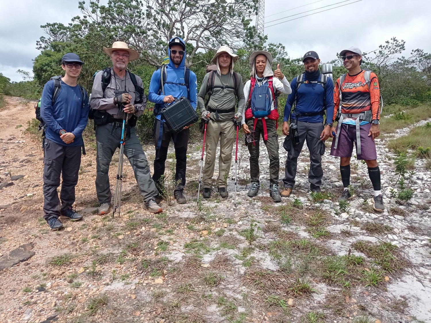 Pose clássica antes de qualquer trilha! Esquerda para a direita: Theo, eu, Diego, Fabio Ligeirinho Dal Gallo, Cris Cheetara Macedo, Fabio Benevides e Samuel. Foto da Lúcia.