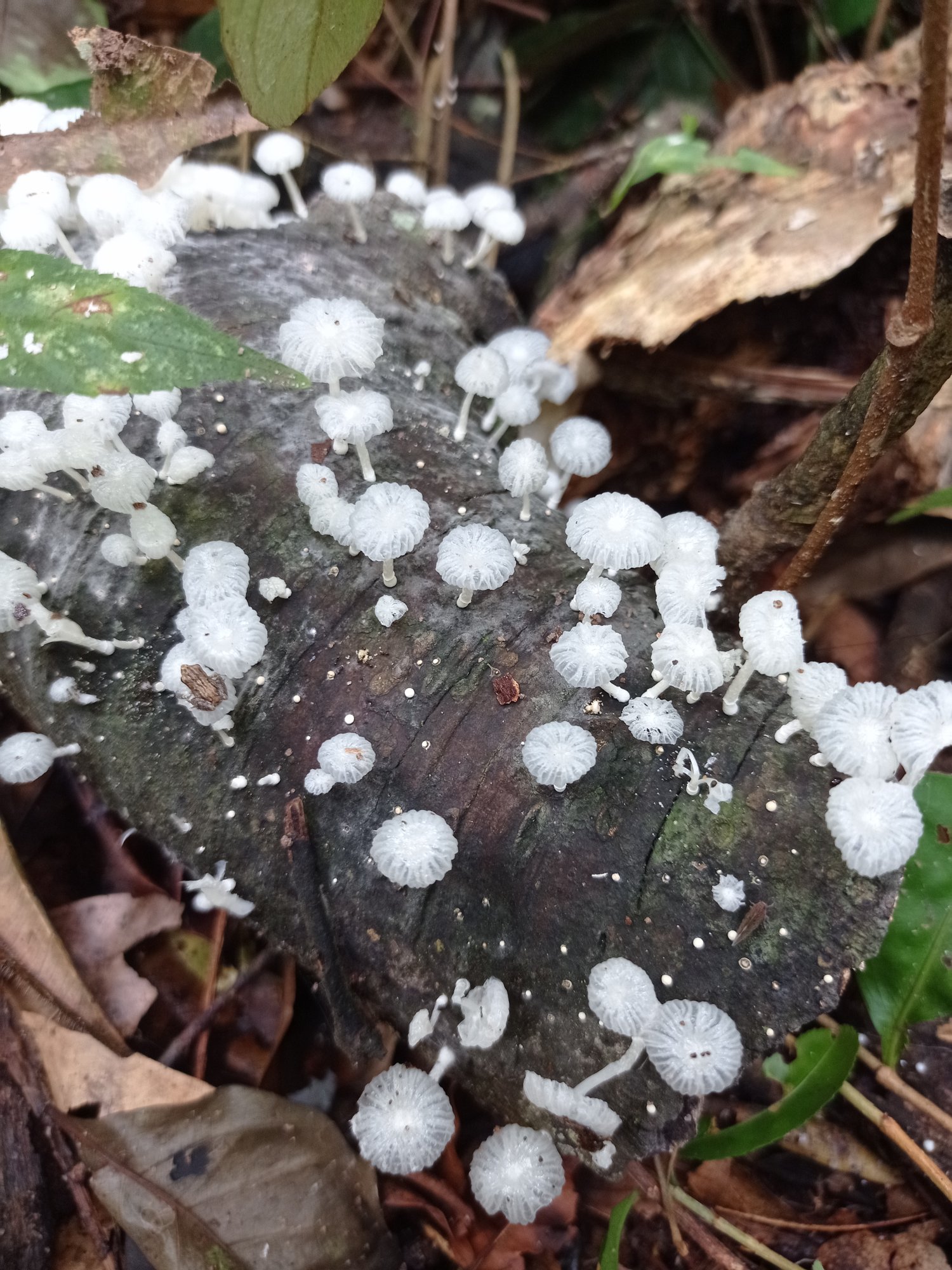 Muitos cogumelos de tipos e tamanhos bem diferentes mostravam que a mata estava úmida. Foto de Cris.