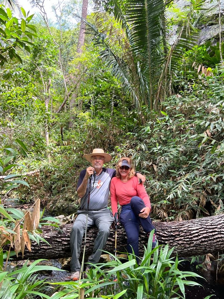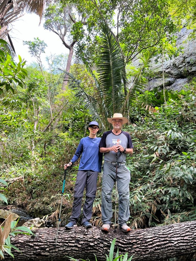 Eu e meu filho e eu e Lucia no caminho para as cachoeiras.