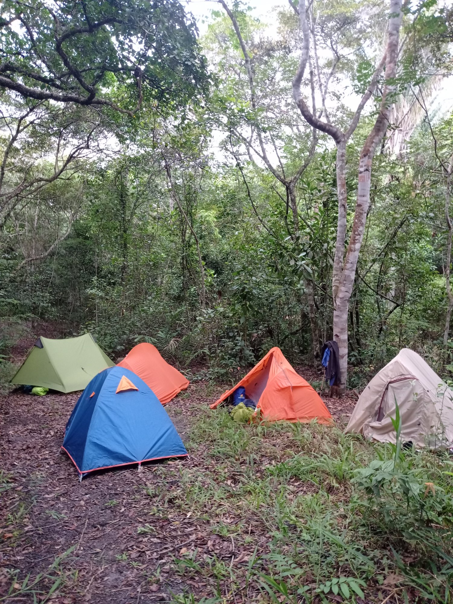 Num trecho, logo antes de subir para outra crista, um local que dava para armar tendas no meio da mata, não longe da água. Mas uma caveira e ossada de jumento dava um ar lúgubre ao lugar. E o animal poderia ter morrido de morte matada pois existem suçuaranas na região (onças adoram jumentos).