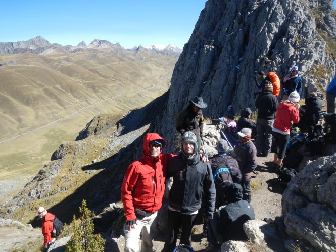 Dos cerca de 23 trekkers (dois grupos) apenas 5 toparam a empreitada. Pena que não estava com este pique. A vista do passo é lindíssima, um dos cartões postais do circuito, com a laguna Jurau lá no fundo.