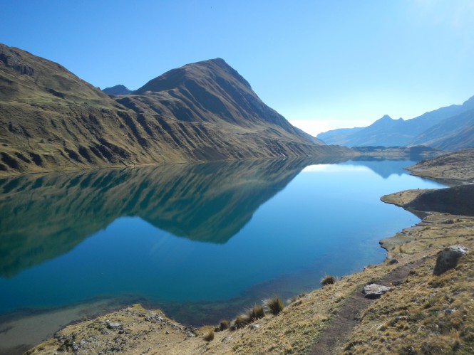 Passamos pela represa Viconga, usada apenas para irrigação. Aquela represa era uma feia intervenção humana na região. Ali perto havia uma antiga base do Sendero Luminoso. Caminhamos também pelos restos de uma antiga trilha inca.