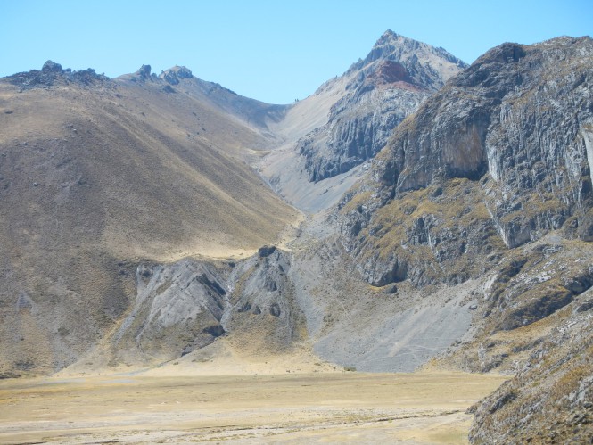 A descida foi fácil até que encontramos o vale do rio Calinca, vindo da direita. Este é o vale em que sairíamos se cruzássemos o Passo San Antonio. Era um canion estreito. Descemos até o fundo do vale e prosseguimos até o vilarejo de Huayllapa. Uma porteira no caminho foi imediatamente fechada quando nos viram, para cobrança da proteção.