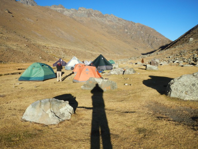 Partimos tristes devido a saída de Renato, pois o seu bom humor trazia alegria para o acampamento. Quando ele entrava na tenda cozinha para conversar com os peruanos, só ouvia da minha barraca as risadas, com as piadas do Renato.
