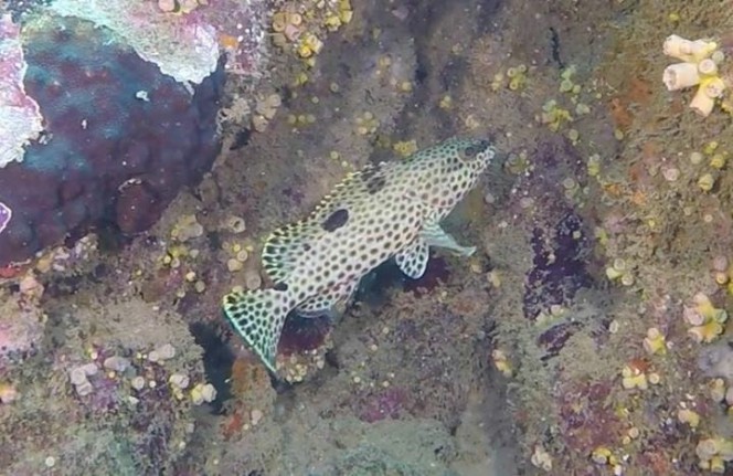 Caimos na água. Muita vida marinha. Cardumes de enxadas, salemas, barrigudinhas, xaréus e cocorocas brancas (Haemulon parra). Entre as pedras, avistamos dentões arriscos. Alguns peixes-pedras (Scorpaena brasiliensis) bem mimetizados lembravam a regra de sempre manter uma distância do fundo e das pedras, sem tocá-los. A dor causada pelo veneno deste peixe é muito forte e dizem que nem a morfina consegue aliviar.