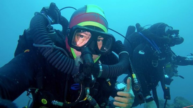 A cordilheira é extensa. Usamos três carretilhas soltando cerca de 500 metros de cabo e, mesmo assim, não percorremos toda a formação. Ficamos cerca de 3 horas submersos. A descompressão durou apenas 8 minutos, isto porque os rebreathers otimizam a mistura gasosa respirada reduzindo a necessidade de paradas descompressivas.