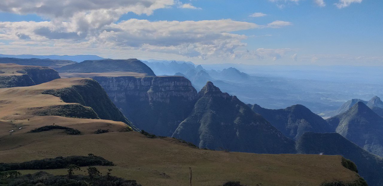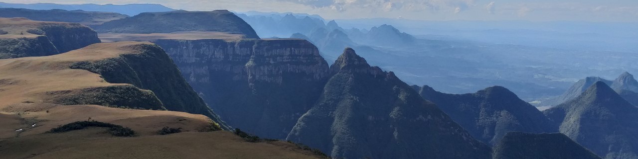 Trekking AcampamentoPenhascos que sobem abruptamente 1.300 metros acima do nível do mar, em grandes escarpas de basalto, formando a borda de um planalto, recortado por cânions magníficos, coroado por campos (coxilhas) ondulantes entremeados por bosques de araucárias e córregos, fazem desta travessia uma das mais belas do País. Pessoalmente acredito que supere em beleza a Peterê e o Paty. Mas esta travessia imperdível é muito menos divulgada e transitada. Mas, para ser feliz, depende muito do tempo. Pode ser uma provação com chuva, frio e viração ou uma delícia com tempo ensolarado.