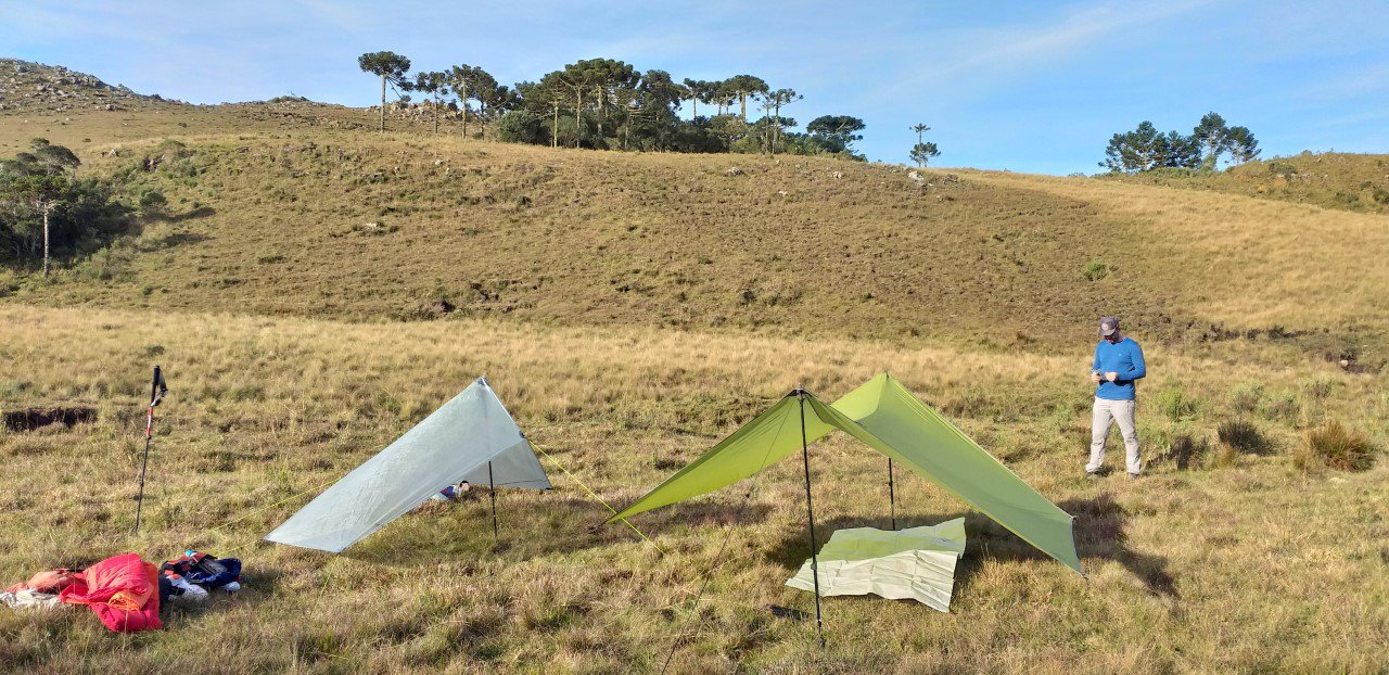 Antes das sete estávamos de pé. Durante a noite a mínima foi 8º C, mas dormimos sem frio. Uma travessia com mochila light ou ultralight não significa que tenhamos que passar frio.