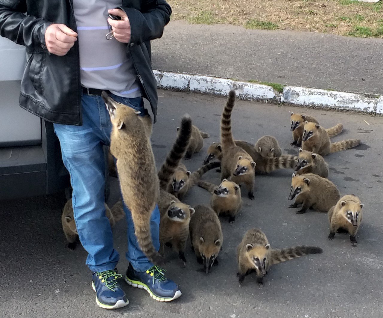 No mirante muitos quatis "assaltavam" os turistas. Imagina isto no bivaque!