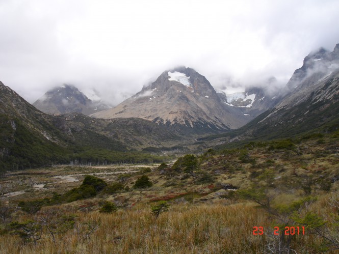 Pouco distante da margem direita do rio há uma trilha excelente,a melhor de todo o circuito. Segue ondulando pelas encostas. Possivelmente esta trilha segue mais para dentro do vale. Provável que fosse melhor atravessar o rio Olívia bem antes, alcançando esta trilha ótima e poupando o desgaste nos alagadiços do último trecho antes da laguna Arco Iris. Acho que o Lonely Planet apenas não sugeriu a travessia antes do rio para que os trekkers pudessem ver a laguna Arco Iris que, na minha opinião, não vale o esforço.