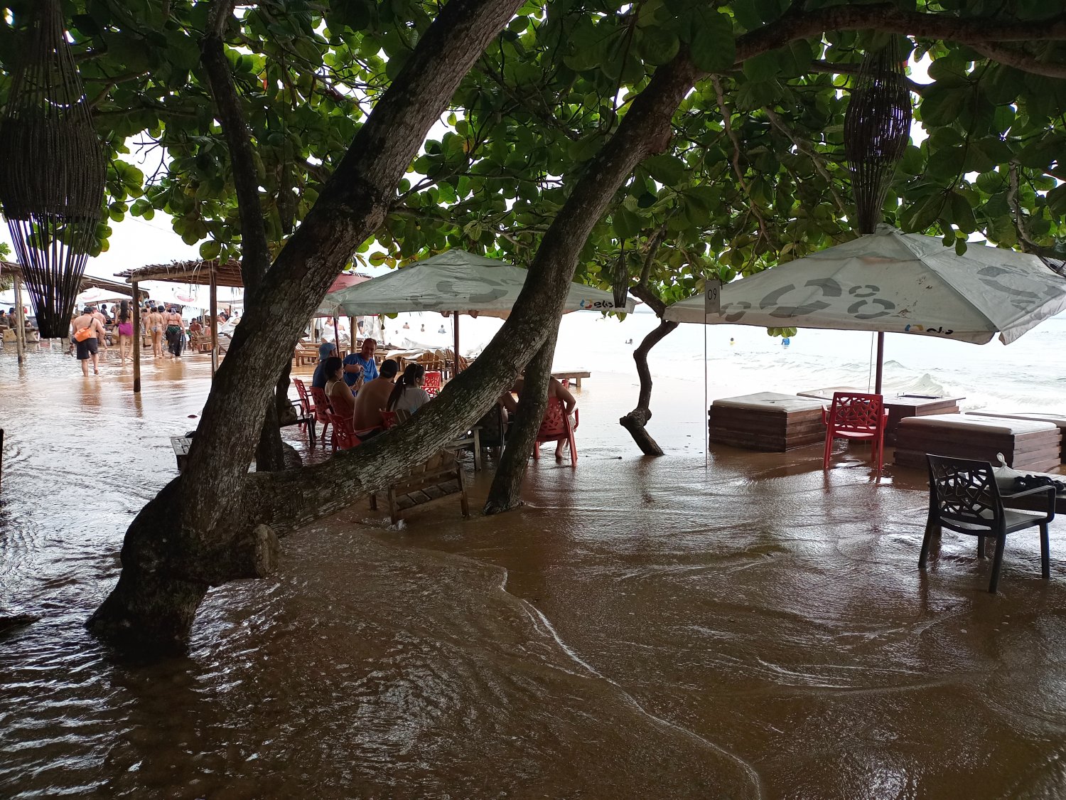Maré grande, maré de lua nova, As ondas batiam nas cadeiras dos bares.