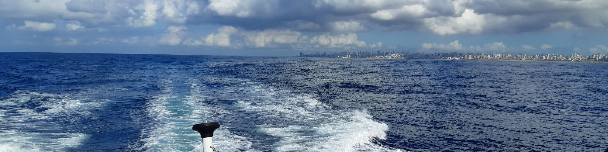 Na costa eram visíveis as dunas da Lagoa do Abaeté e do Parque das Dunas. Estávamos ao través da Praia da Pedra do Sal, 8 km mar adentro.