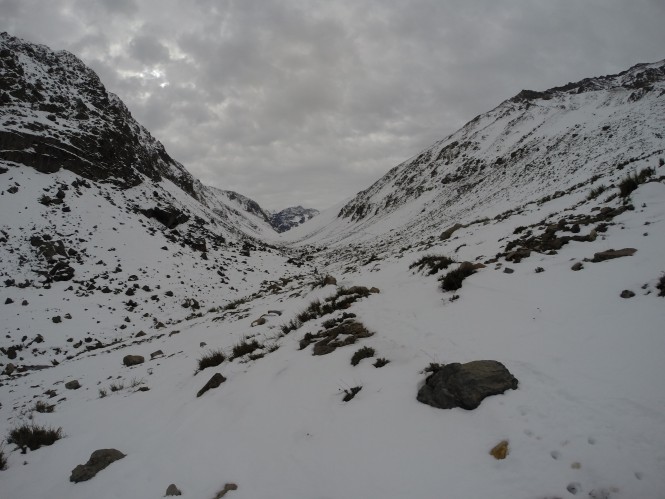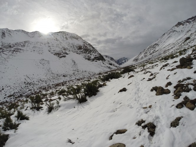 As 15:30, com pouco mais de duas horas de sol pela frente fiz uma regra de três simples e vi que naquele ritmo não chegaria sequer a La Lata (ponto de acampamento intermediário). Com mais um pouco a neve alcançaria o joelho. Escureceria e teria de acampar no meio do nada e da neve.