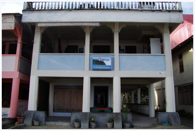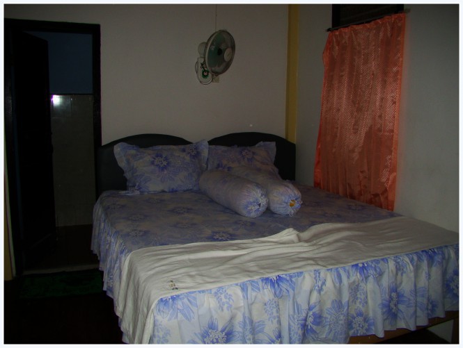 The guest room was simple, with a fan, but with bathroom like ours. I heard that in other hostels sometimes the bathroom was with the vase on the floor in their style. The shower was open with no curtain and the water sometimes did not smell very good, so, except for bathing, we use al the time bottle of water even to brush your teeth. My side of the bed was beside the wall and there was a big window, serving for me to spy when he woke up with the noise of the rain. On the first night Timmy came to pass us some guidance on what to do if there were tsunami alarm.