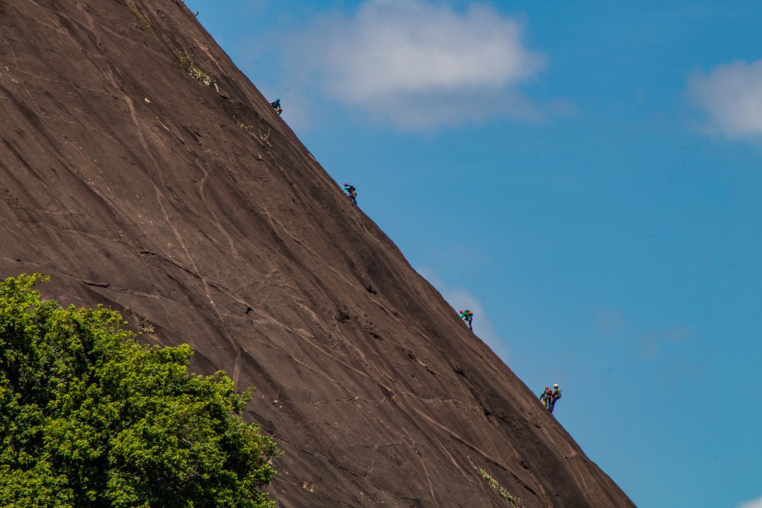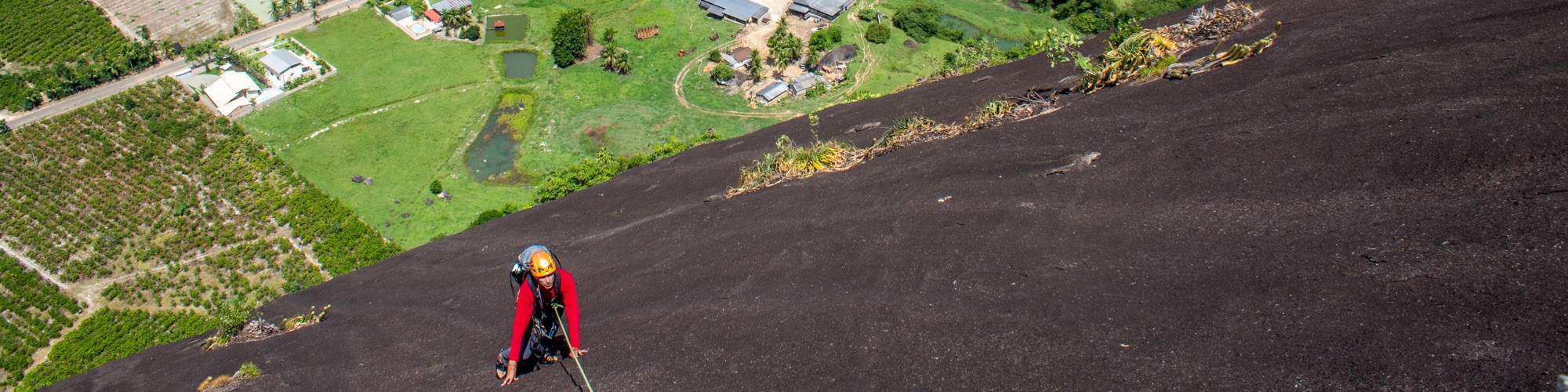 Também merece destaque a via Normal da Pedra Azul (3º IV E2 D2 370 m), que apesar de ser bastante tranquila, com poucas passadas delicadas em aderência, faz cume em um dos cartões-postais da região. O monolito da Pedra Azul tem 1822 metros de altitude e recebe esse nome devido à presença de líquens e musgos, que dependendo da incidência dos raios solares ao longo do dia, pode apresentar coloração azulada. Localizado em Domingos Martins, o Parque Estadual da Pedra Azul também abriga roteiros de caminhadas e poços para banho. A recepção por lá é bem-humorada com os “causos” do José Bellon, guarda ambiental que recebe os visitantes no parque.